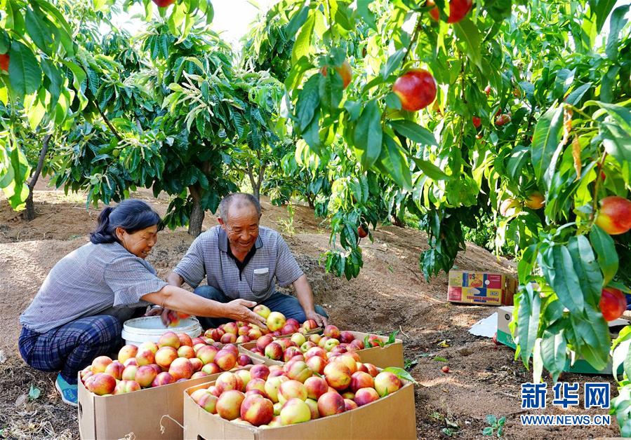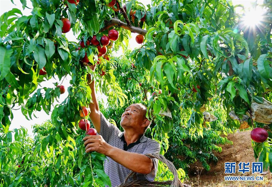 6月22日,秦皇島市撫寧區大新寨鎮王漢溝村的果農在果園采油桃。 近年來,河北省秦皇島市撫寧區引導農民利用燕山淺山丘陵地發展林果種植業,既帶動農民致富,又綠化了荒山。目前該區豐產果樹面積近15萬畝,年產各類果品13萬噸。 新華社記者楊世堯攝