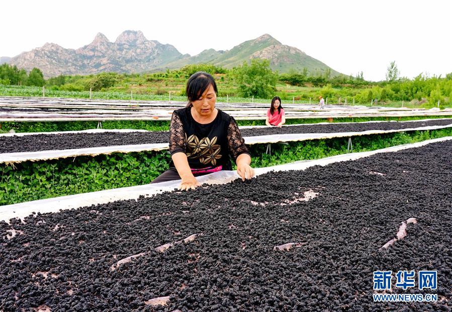 6月22日,秦皇島市撫寧區墳坨管理區舊縣村的果農在晾曬收獲的桑葚。 近年來,河北省秦皇島市撫寧區引導農民利用燕山淺山丘陵地發展林果種植業,既帶動農民致富,又綠化了荒山。目前該區豐產果樹面積近15萬畝,年產各類果品13萬噸。 新華社記者楊世堯攝