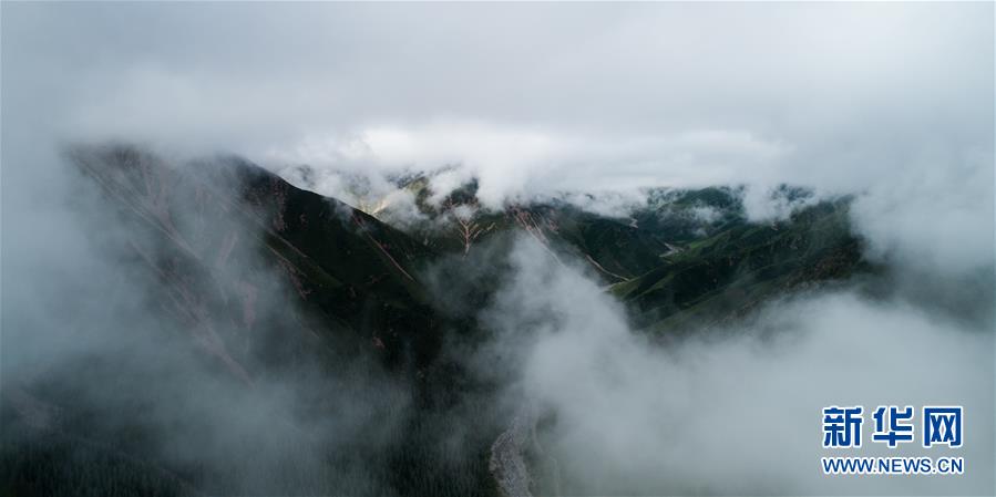 這是6月22日無(wú)人機(jī)拍攝的云霧繚繞的祁連山。