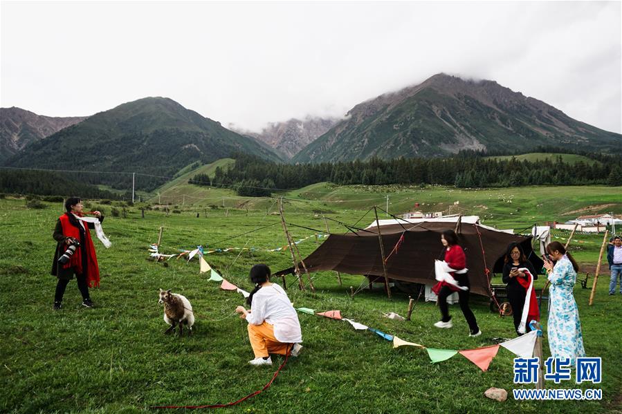 6月21日,游客在祁連縣附近一處草場(chǎng)游玩。 新華社記者 吳剛 攝