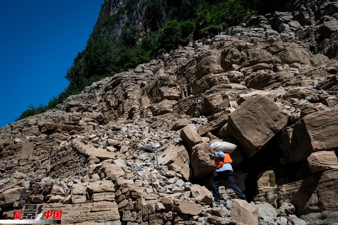每年夏天,因為天氣炎熱猴群不會輕易從林木中走出來,加之水位下降消落帶出現,代光群就得扛著100多斤的糧食往更高的懸崖峭壁上走,汗流浹背便是常有的事。新華網 李相博攝