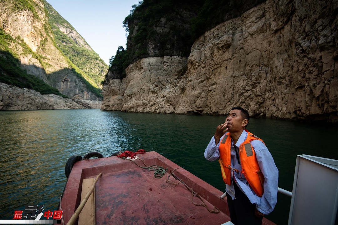 6月的小三峽烈日當空,群山之間,碧波之上,一艘船兒緩緩劃過江面,甲板上佇立著代光群孤獨的身影,靜默望向山林深處,臉上流露出盼望與期待,他就是小三峽唯一的“喂猴人”,自嘲是當地“猴子王”的代光群。新華網 李相博攝