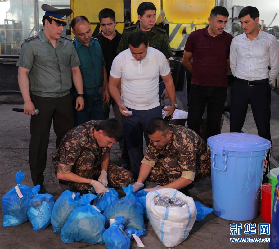6月26日,在位于烏茲別克斯坦首都塔什干市郊的一家工廠內,禁毒人員銷毀毒品。 烏茲別克斯坦執(zhí)法機構26日在首都塔什干市郊一家工廠內集中銷毀了收繳的各類毒品,總量超過1噸。 新華社記者 蔡國棟 攝