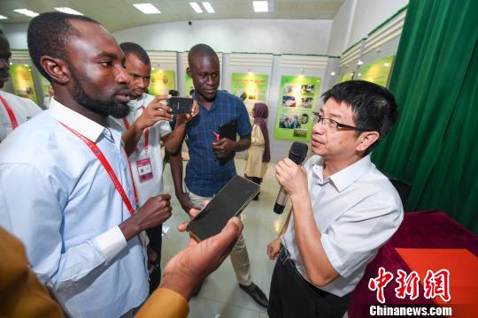 非洲記者采訪雜交水稻中心工作人員。 楊華峰 攝