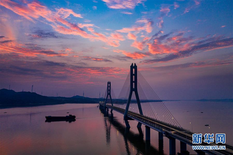 這是鄱陽湖二橋一景(6月28日無人機拍攝)。 6月28日,江西鄱陽湖二橋舉行正式通車儀式,標志著環鄱陽湖地區的又一重要交通控制性工程正式投入使用。 新華社發(傅建斌 攝)