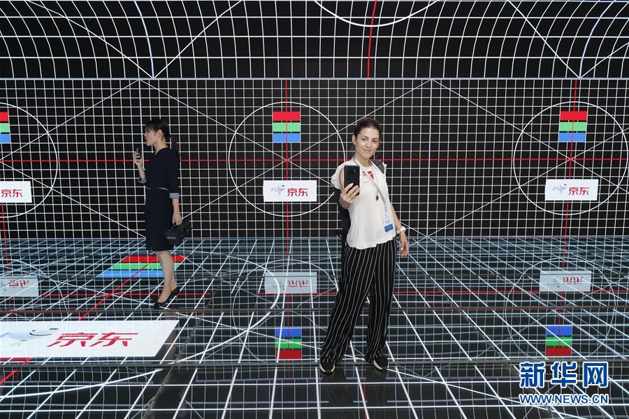 6月28日,塞爾維亞通訊社多媒體總編比利亞娜·拉德卡-舍帕羅維奇在京東總部拍攝“京東展廳”。 當日,前來北京參加“一帶一路”經濟信息共享網絡成立大會的外國媒體機構代表參觀新華媒體創意工場和京東總部,感受中國科技創新發展成果以及社會經濟發展成就。 新華社記者 沈伯韓 攝