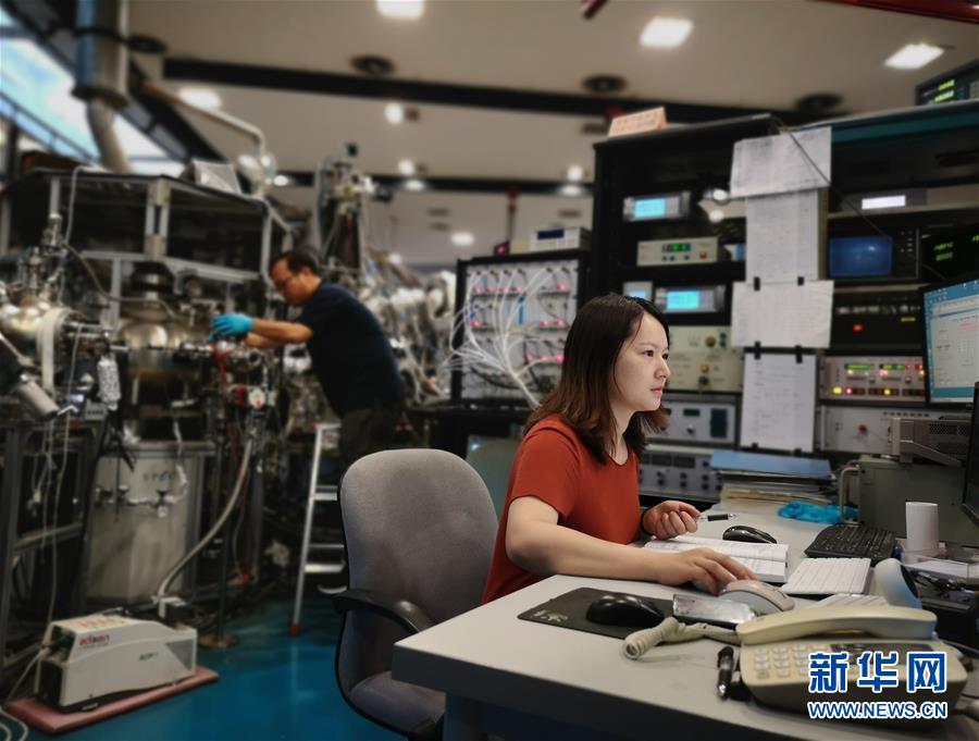 7月1日14時42分,在中科院高能所北京同步輻射裝置光電子能譜實驗站,科研人員在處理實驗數據。 新華社發(蒙巍 攝)
