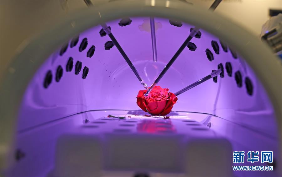 7月1日,在大連國際會議中心,手術機器人進行手術模擬操作。 世界經濟論壇第十三屆新領軍者年會(夏季達沃斯論壇)7月1日至3日在遼寧大連舉行。會場上手術機器人、5G智能沙箱、生物識別技術等科技感十足的展示項目吸引了眾多與會者參觀體驗。 新華社記者 楊青 攝