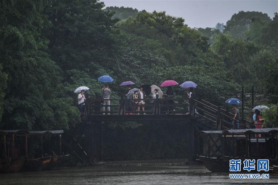 7月13日,游客在浙江省桐鄉市烏鎮景區游覽。 近日,浙江省多地迎來強降水。浙江省防指7月12日下午啟動Ⅳ級應急響應。截至7月11日,浙江自入梅以來平均降水量達357毫米,較往年明顯偏多。 新華社記者 徐昱 攝