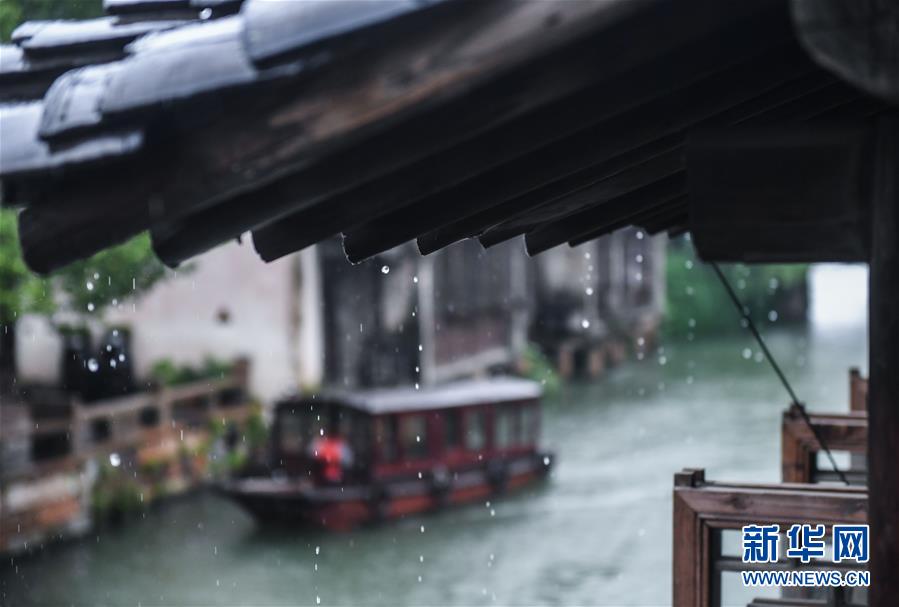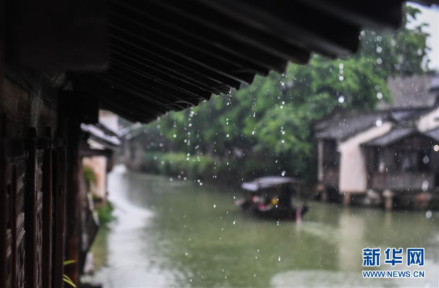 7月13日,浙江省桐鄉市烏鎮景區內雨水連綿。 近日,浙江省多地迎來強降水。浙江省防指7月12日下午啟動Ⅳ級應急響應。截至7月11日,浙江自入梅以來平均降水量達357毫米,較往年明顯偏多。 新華社記者 徐昱 攝
