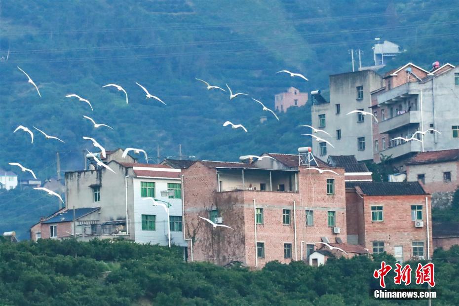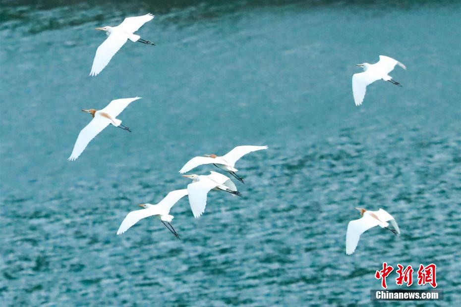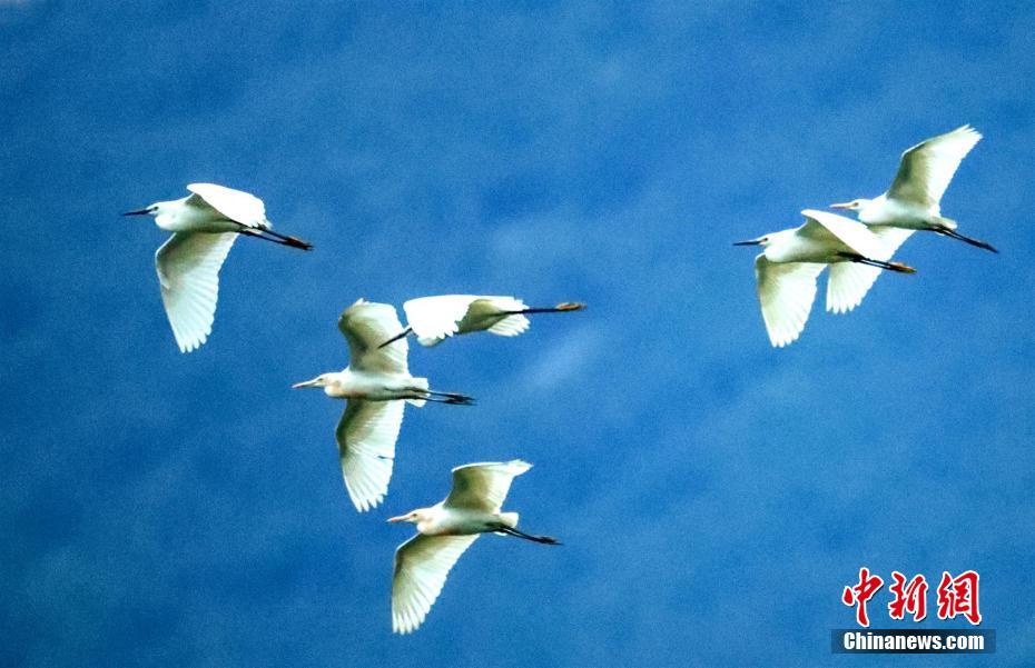 成群白鷺在童莊河畔翩飛。王罡 攝