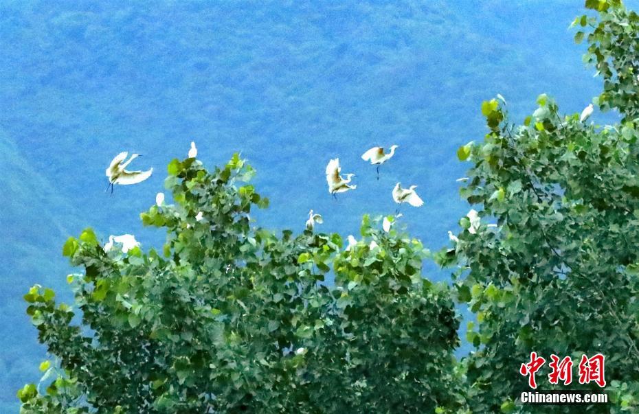 盛夏時節,三峽庫區湖北省秭歸縣童莊河水清岸綠,白鷺或在林間飛舞鳴唱,或在河道上空結伴掠過,構成了一幅生態美景圖。王罡 攝