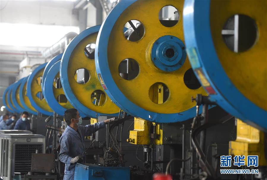 工人在位于店口鎮的浙江盾安智控科技股份有限公司鍛壓車間內操作(2月23日攝)。位于浙江省諸暨市的工業重鎮店口鎮在嚴格疫情防控的同時,由政府出資包車前往多地幫助企業接回員工返崗復工,并推出鏈式復工復產相關政策,協調當地大企業“以大帶小”幫助產業鏈條上的中小企業解決人員、住宿等問題。 新華社記者 韓傳號 攝