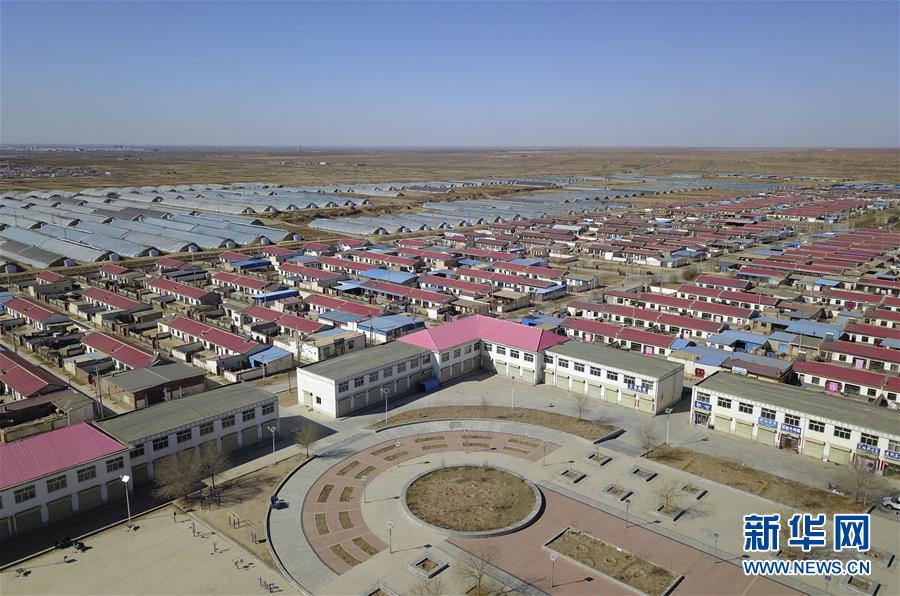 這是群眾易地扶貧搬遷入住的甘肅省古浪縣黃花灘生態移民區感恩新村(3月10日攝,無人機照片)。 新華社記者 范培珅 攝