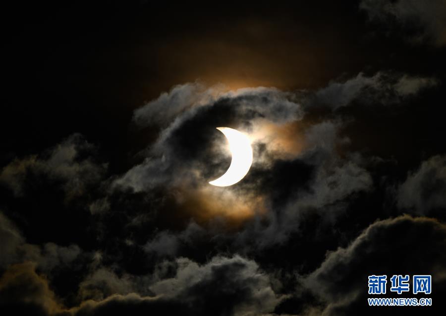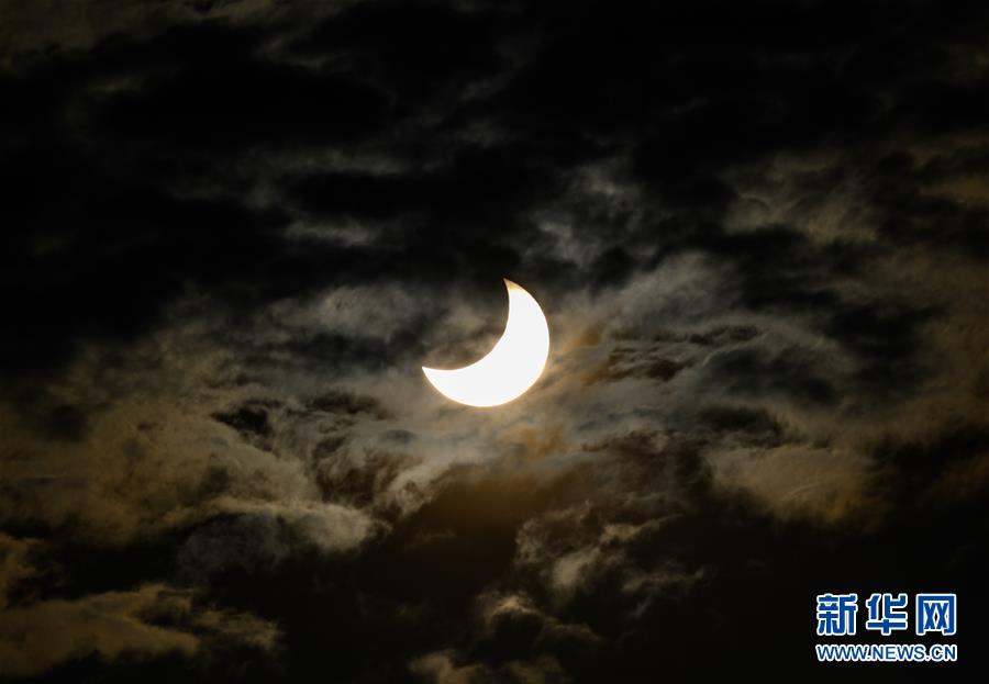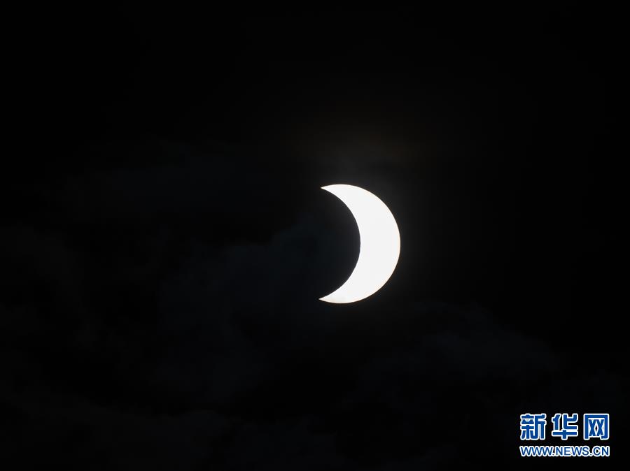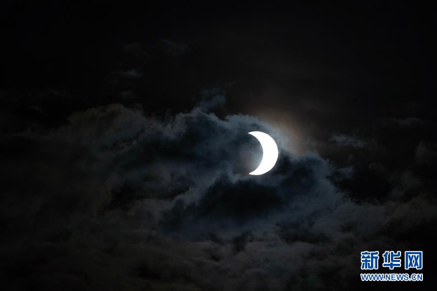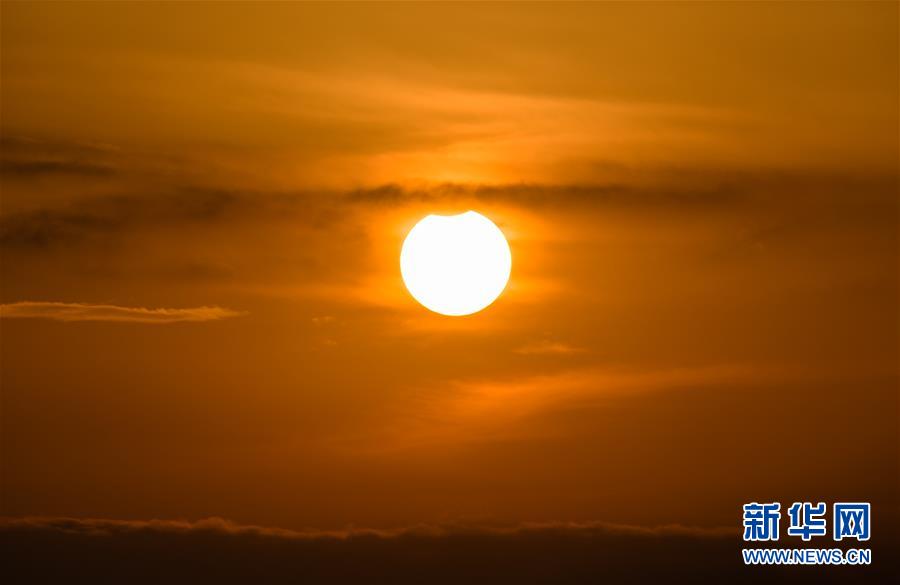 這是6月21日在肯尼亞首都內羅畢拍攝的日食景象。 “日環食”天文景觀于6月21日在天宇上演。環食帶以外的地區可以看到不同程度的偏食。 新華社記者 李琰 攝