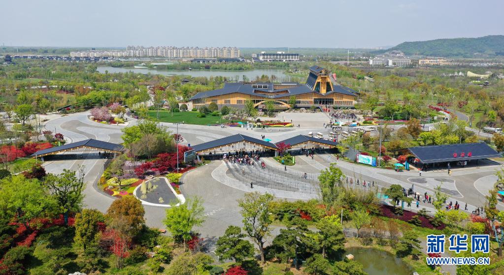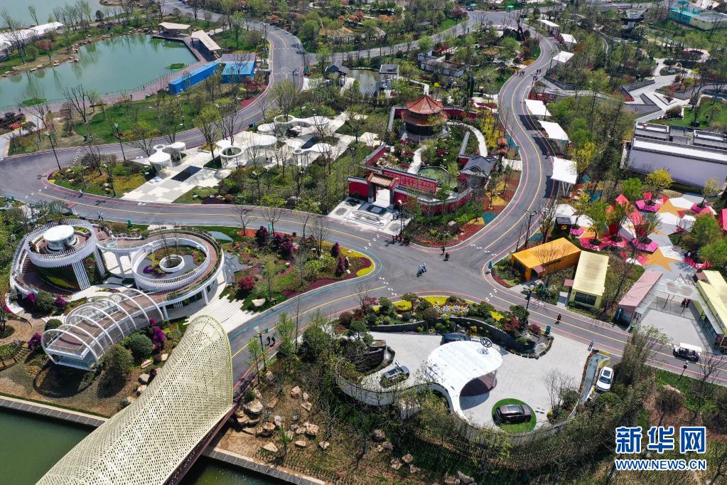 4月8日拍攝的2021年揚州世界園藝博覽會園區(無人機照片)。