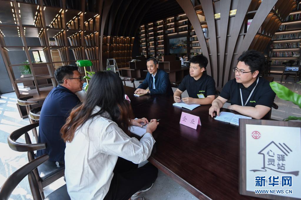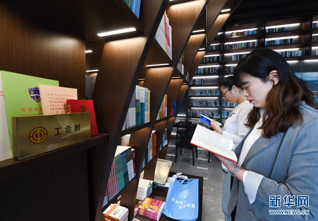 4月21日,職工在湖州市吳興區(qū)新時代職工普法基地的職工書屋內(nèi)閱讀。