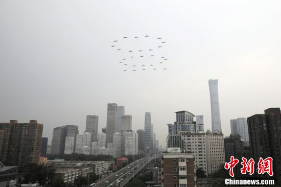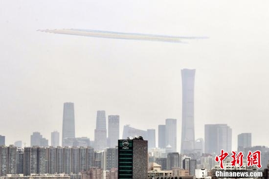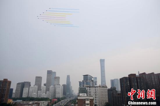 7月1日上午,慶祝中國共產黨成立100周年大會在北京天安門廣場隆重舉行。圖為飛行慶祝表演。 中新社記者 熊然 攝