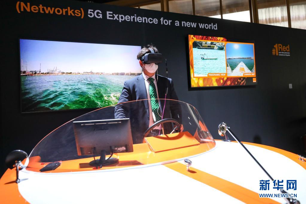 6月29日,在西班牙巴塞羅那,工作人員在世界移動(dòng)通信大會(huì)法國(guó)電信公司展廳演示利用5G技術(shù)搭配VR(虛擬現(xiàn)實(shí))眼鏡實(shí)現(xiàn)遠(yuǎn)程遙控駕駛。