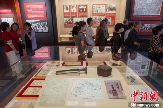 7月2日,江蘇省南京市,市民在渡江勝利紀念館內參觀“天翻地覆慨而慷——渡江戰役勝利暨南京解放展”。日前,完成升級改造的南京渡江勝利紀念館開放。 中新社記者 泱波 攝
