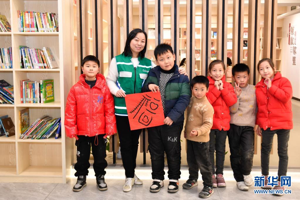 吳菊萍(左二)在浙江杭州的社區進行公益志愿服務期間與小朋友合影(1月3日攝)。新華社記者 黃宗治 攝