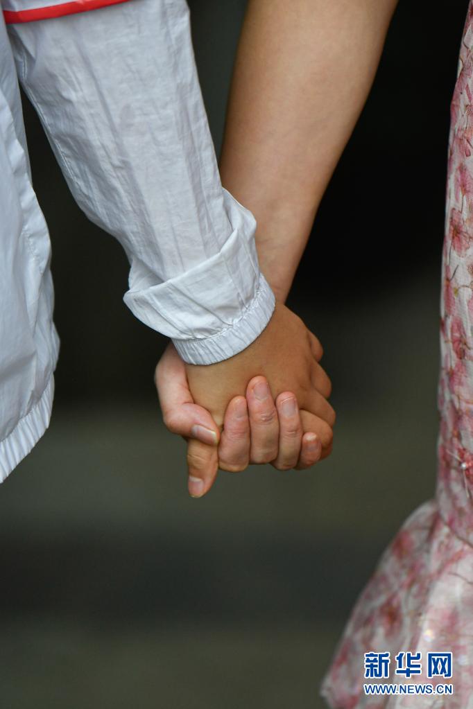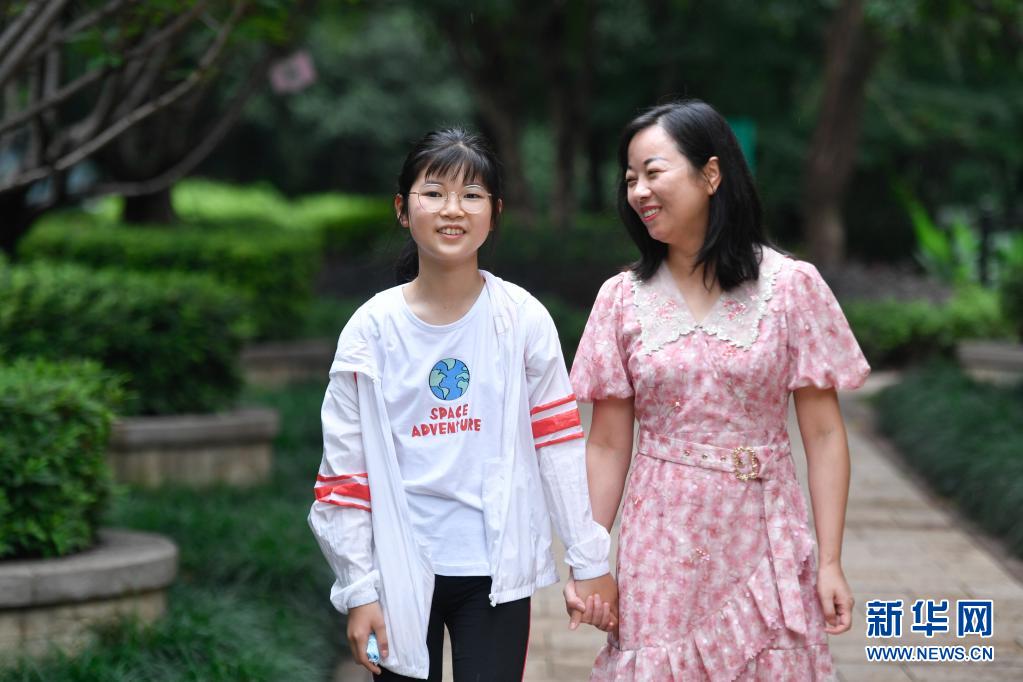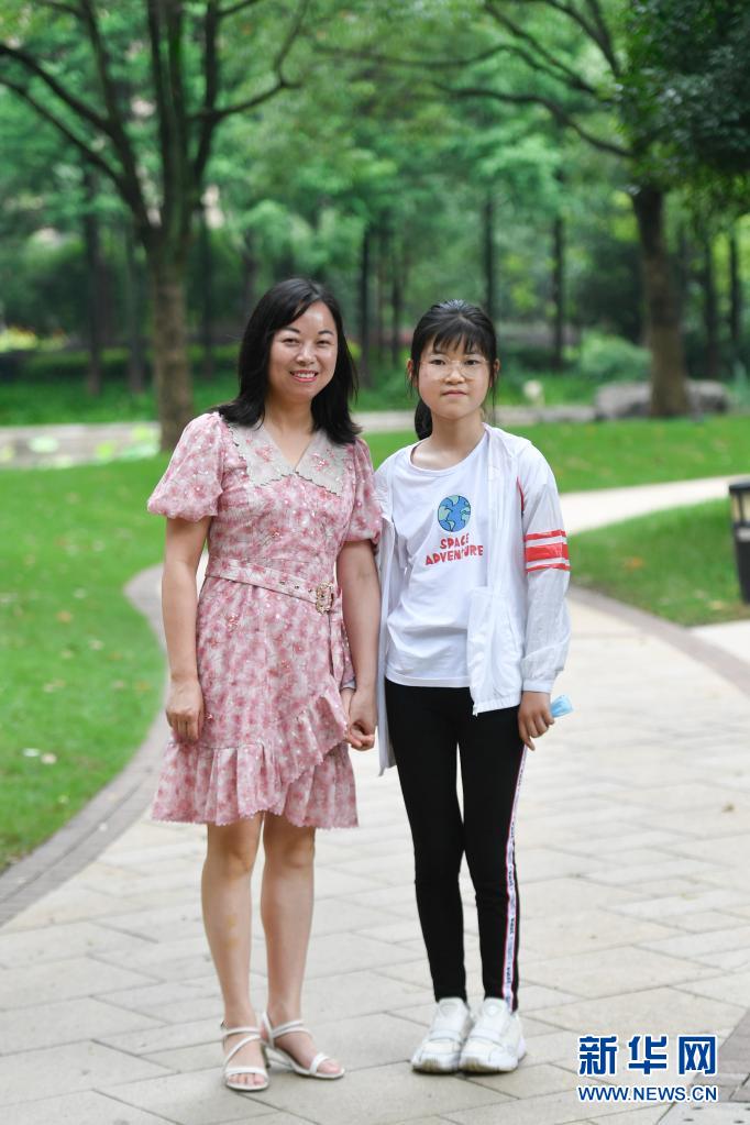 吳菊萍(右)手牽著妞妞在浙江杭州自己居住的小區參觀(7月1日攝)。新華社記者 黃宗治 攝