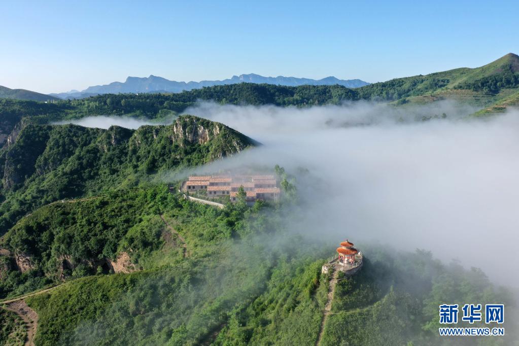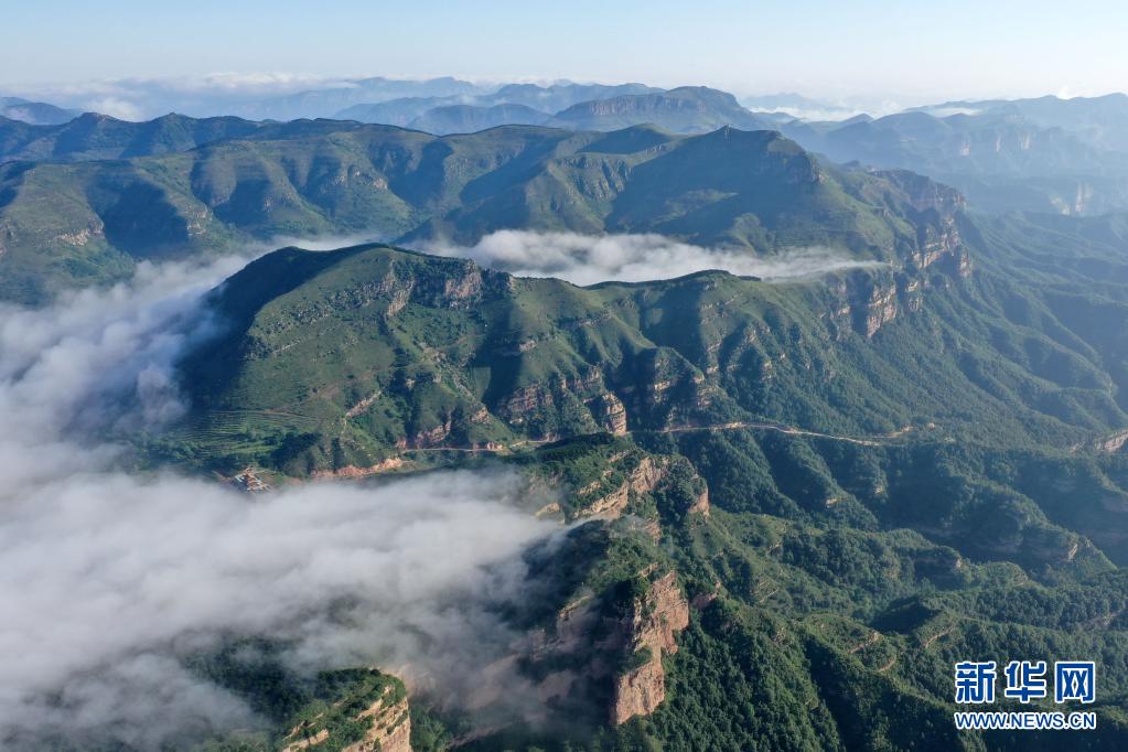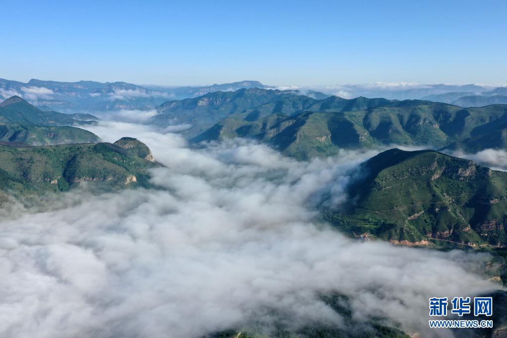 當日,位于太行山深處的河北省邢臺市天河山景區出現云海景觀,云霧在綠意盎然的峰林間飄蕩,山巒與云海交相輝映,美若畫卷。