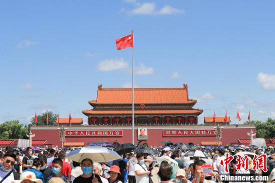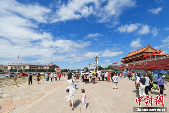 7月3日,北京天氣晴好,天安門廣場游客眾多。 中新社記者 賈天勇 攝
