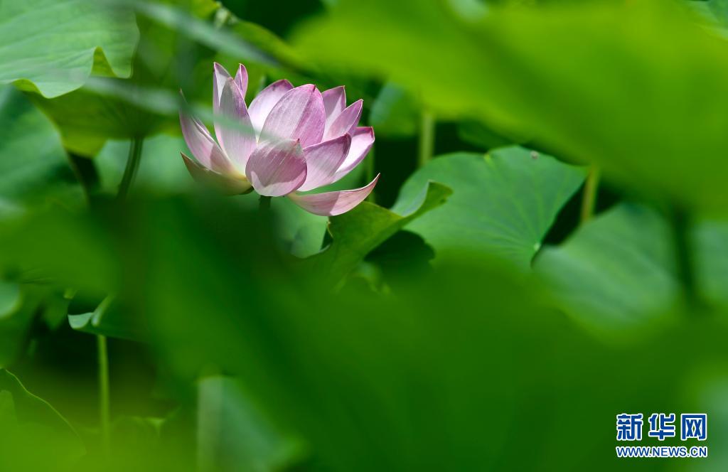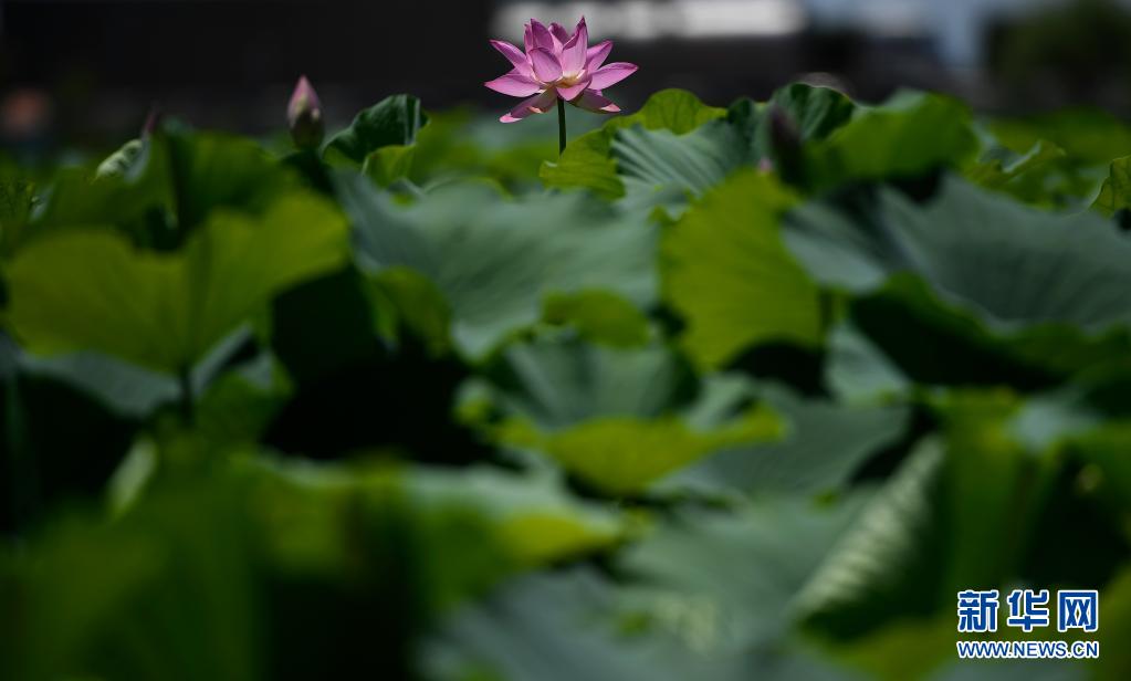 這是鳴翠湖國家濕地公園綻放的荷花(7月3日攝)。