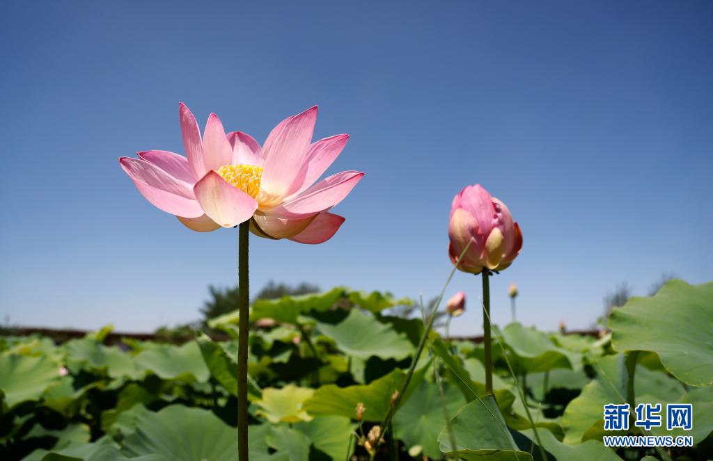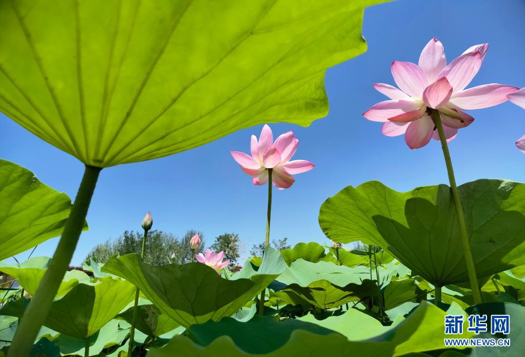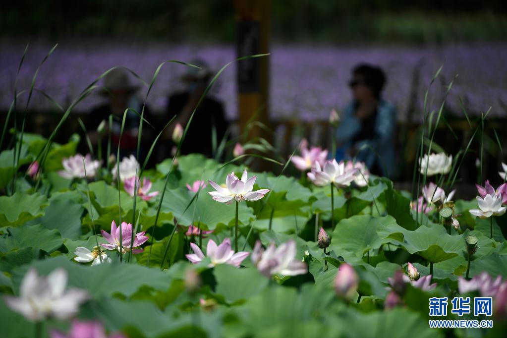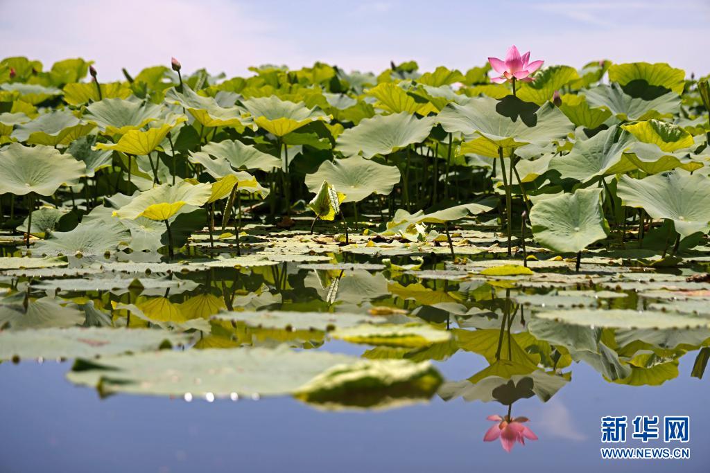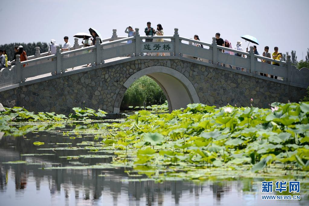 近日,位于寧夏銀川市興慶區的鳴翠湖國家濕地公園荷花競相開放,吸引眾多游客前來賞花、避暑。