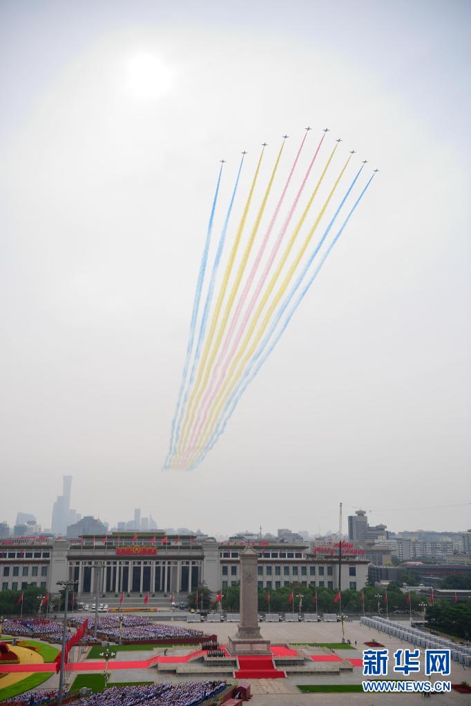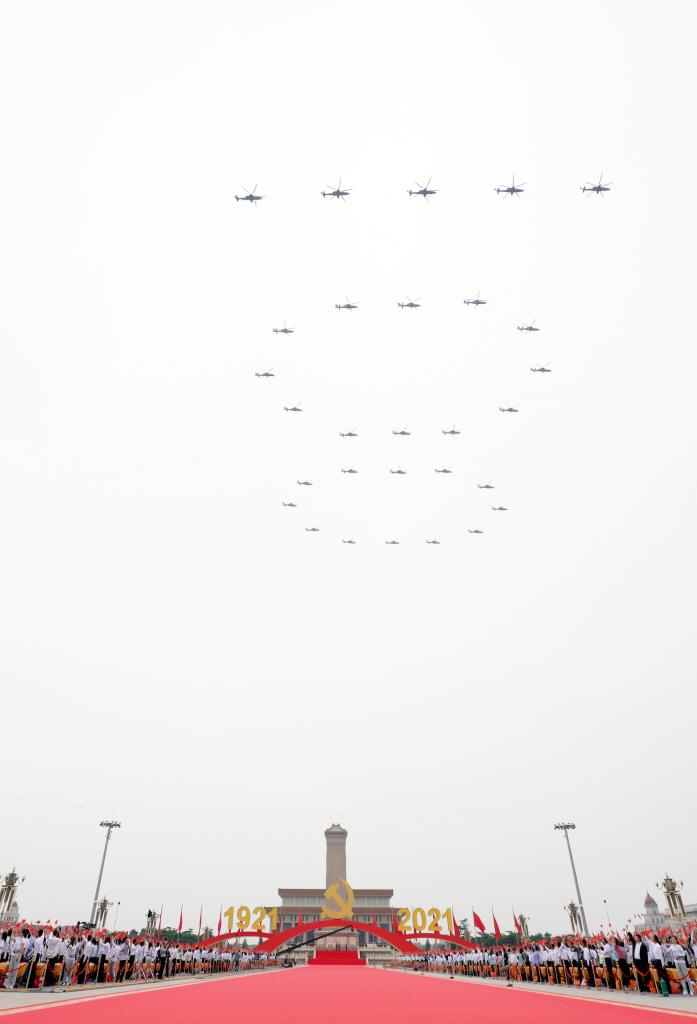 7月1日上午,慶祝中國共產黨成立100周年大會在北京天安門廣場隆重舉行。這是大會開始前的飛行慶祝表演。