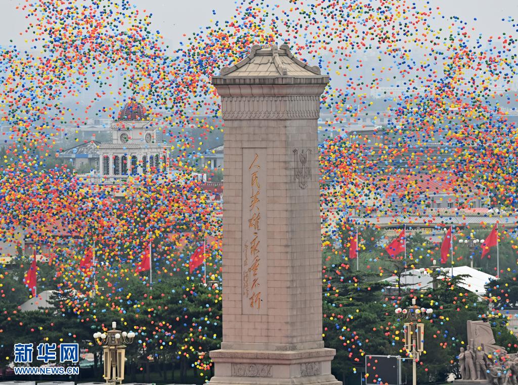 7月1日上午,慶祝中國共產黨成立100周年大會在北京天安門廣場隆重舉行。這是慶祝大會現場放飛氣球。