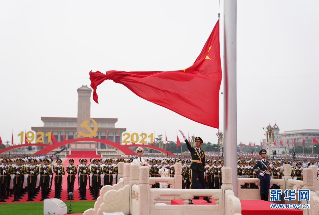 7月1日上午,慶祝中國共產黨成立100周年大會在北京天安門廣場隆重舉行。這是升國旗儀式。