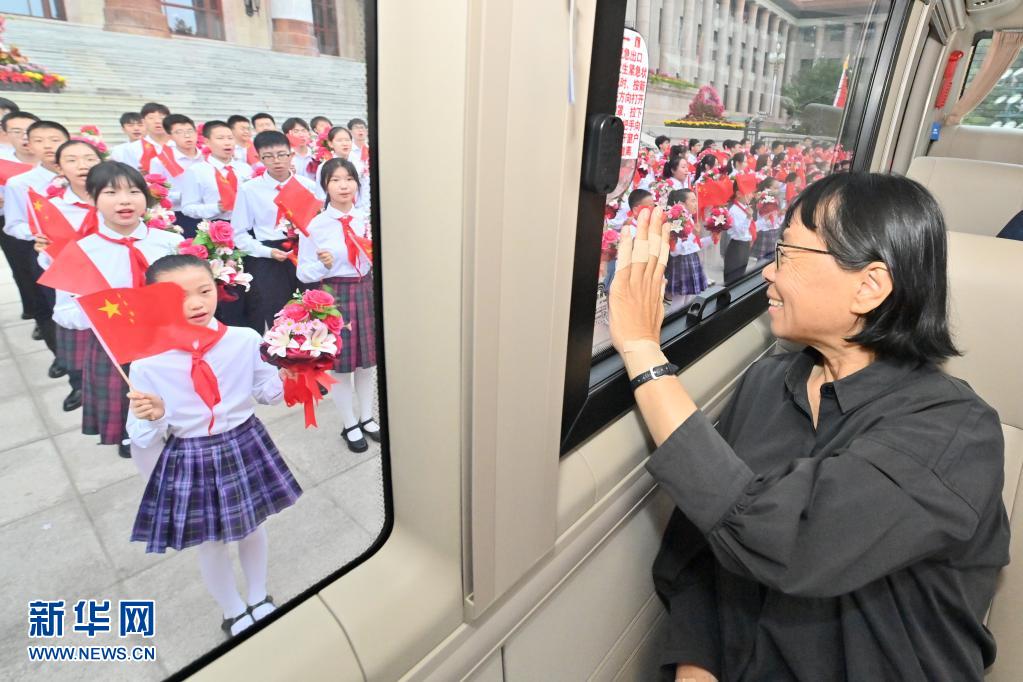 6月29日,慶祝中國共產黨成立100周年“七一勛章”頒授儀式在北京人民大會堂金色大廳隆重舉行。這是“七一勛章”獲得者張桂梅向青少年致意。
