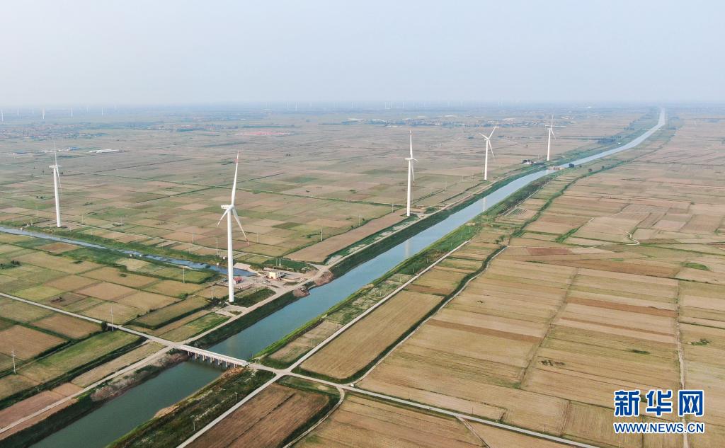 黃驊市舊城鎮(zhèn)境內(nèi)用于調(diào)引長(zhǎng)江和黃河水的引水主干渠(7月3日攝,無(wú)人機(jī)照片)。