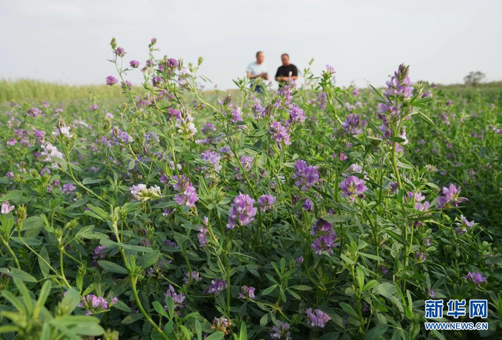 7月4日在黃驊市一家農(nóng)場(chǎng)拍攝的抗旱耐旱作物苜蓿。