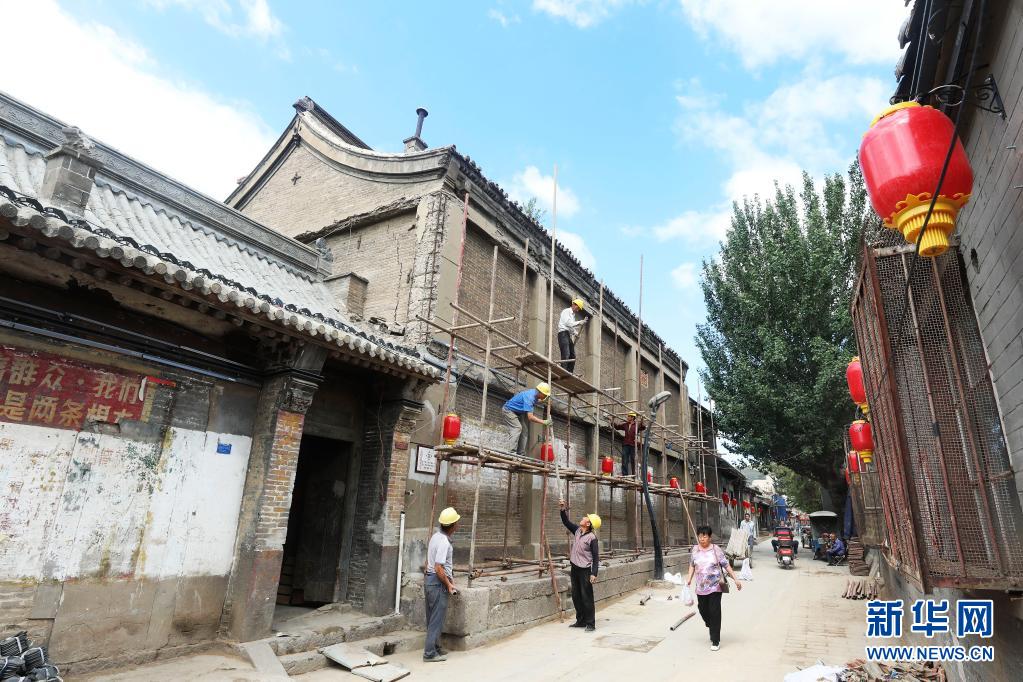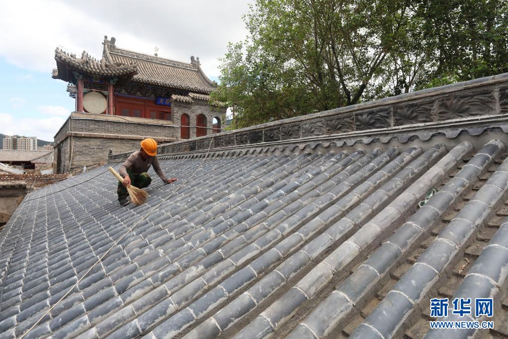 7月4日,工人在位于張家口市橋西區的張家口堡進行古建筑修繕施工。