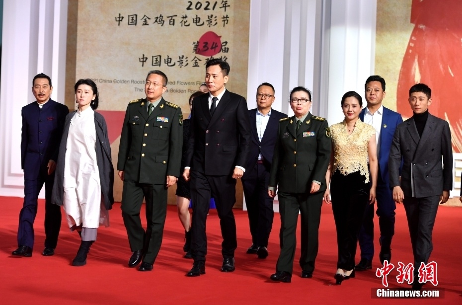 圖為電影《長津湖之水門橋》劇組亮相紅毯儀式。 中新社記者 呂明 攝