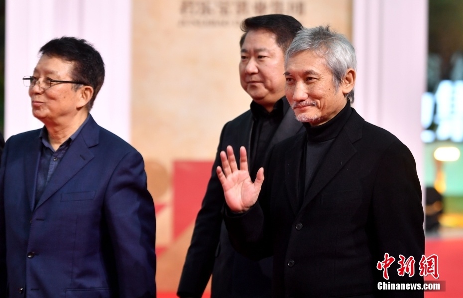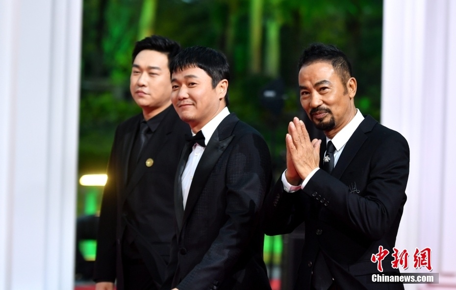 圖為任達(dá)華(右)、肖央(中)等亮相紅毯儀式。 中新社記者 呂明 攝