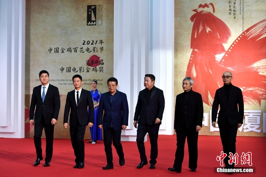 圖為香港導(dǎo)演徐克(右)等亮相紅毯儀式。 中新社記者 呂明 攝