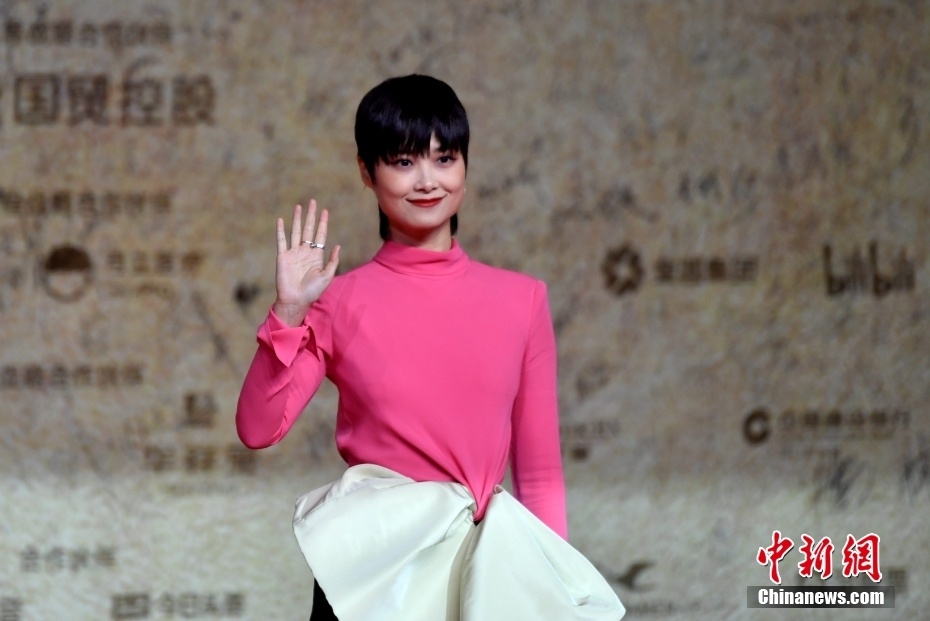圖為李宇春亮相紅毯儀式。 中新社記者 呂明 攝