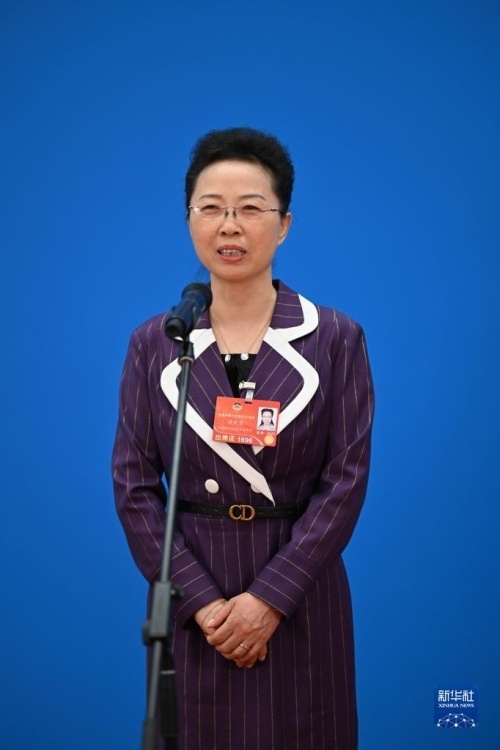 3月7日,全國政協(xié)十三屆五次會議第二場“委員通道”采訪活動在北京人民大會堂新聞發(fā)布廳舉行。這是全國政協(xié)委員黃改榮通過網(wǎng)絡視頻方式接受媒體采訪。新華社記者 金良快 攝