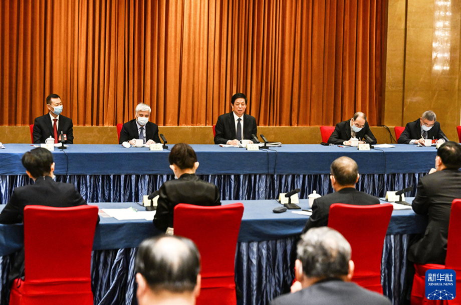 3月6日,中共中央政治局常委、全國人大常委會委員長栗戰書看望出席全國政協十三屆五次會議的民盟、民進界委員并參加討論。新華社記者 饒愛民 攝