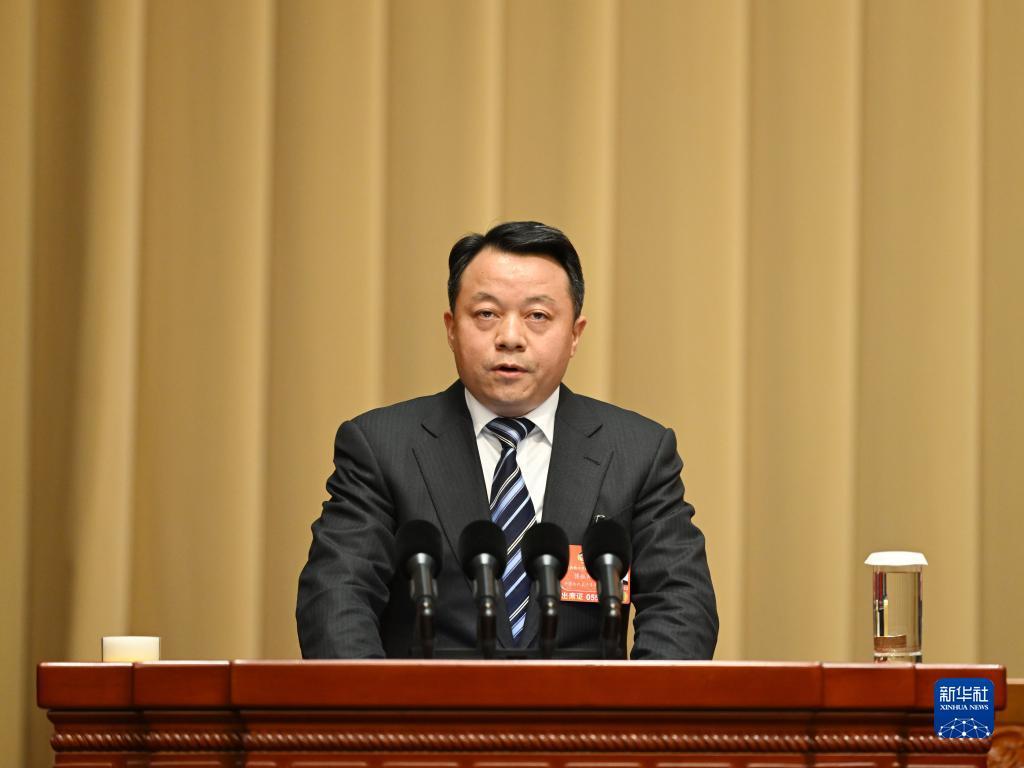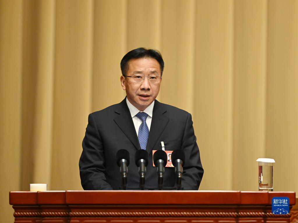3月7日,全國政協十三屆五次會議舉行視頻會議。12名委員作大會發言。這是廖澤云委員在主會場作大會發言。新華社記者 劉彬 攝