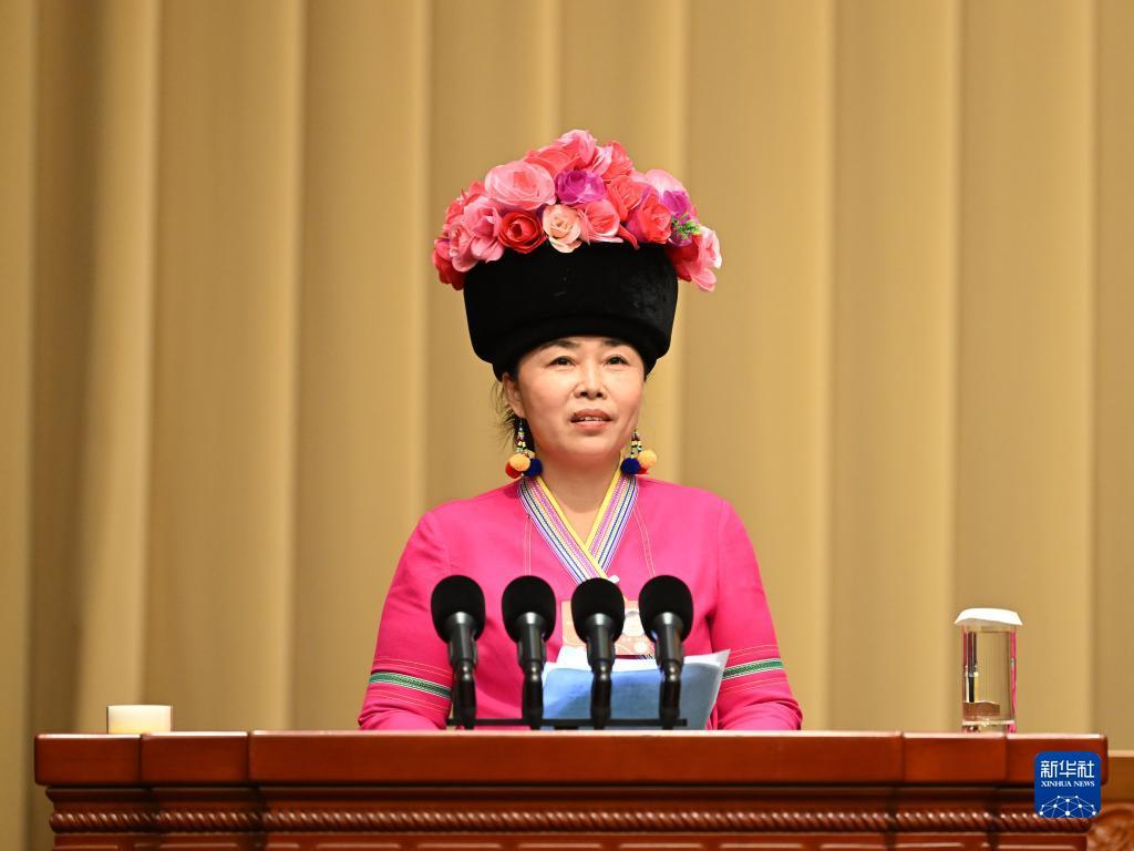 3月7日,全國政協十三屆五次會議舉行視頻會議。12名委員作大會發言。這是在主會場,張恩迪委員代表致公黨中央作大會發言。新華社記者 殷博古 攝