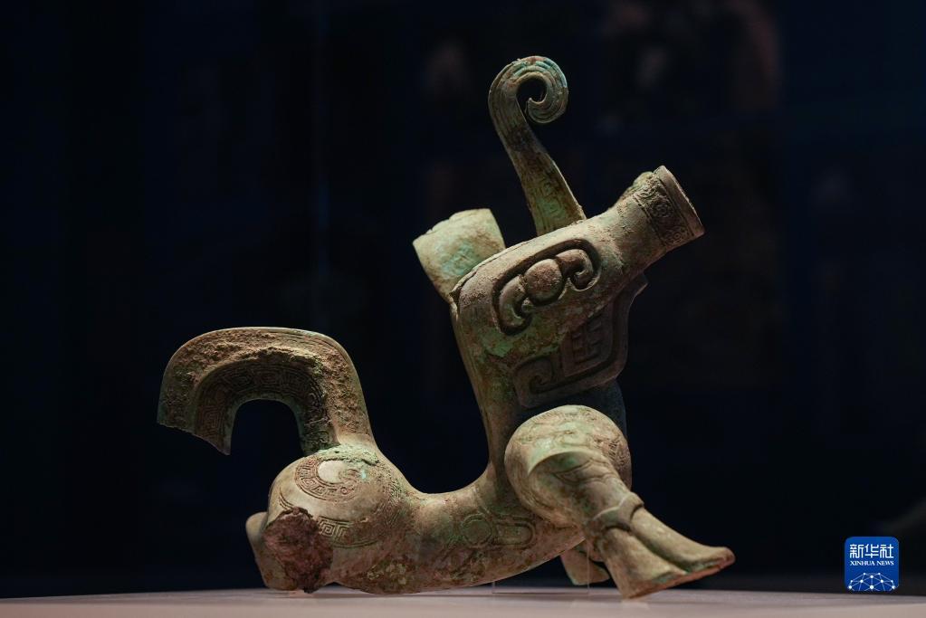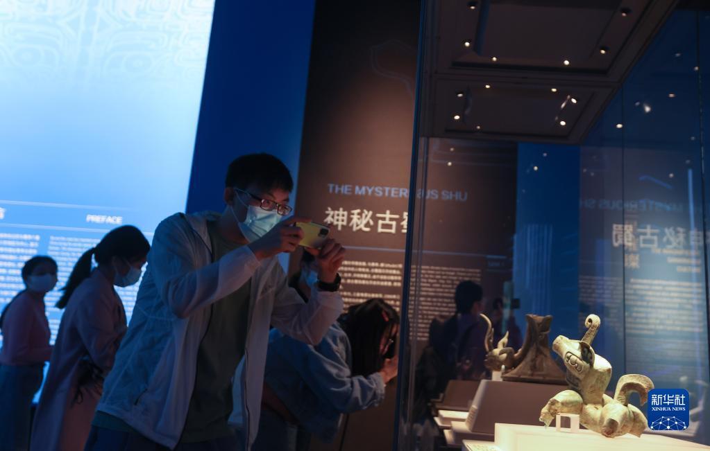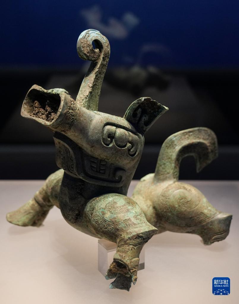 當日,“花開并蒂——巴蜀青銅文明特展”作為國際博物館日川渝主會場重磅展覽在宜賓市博物院展出,此前在三星堆遺址3號“祭祀坑”出土的一件形似“機器狗”的銅神獸首次面向公眾展出。新華社記者 江宏景 攝