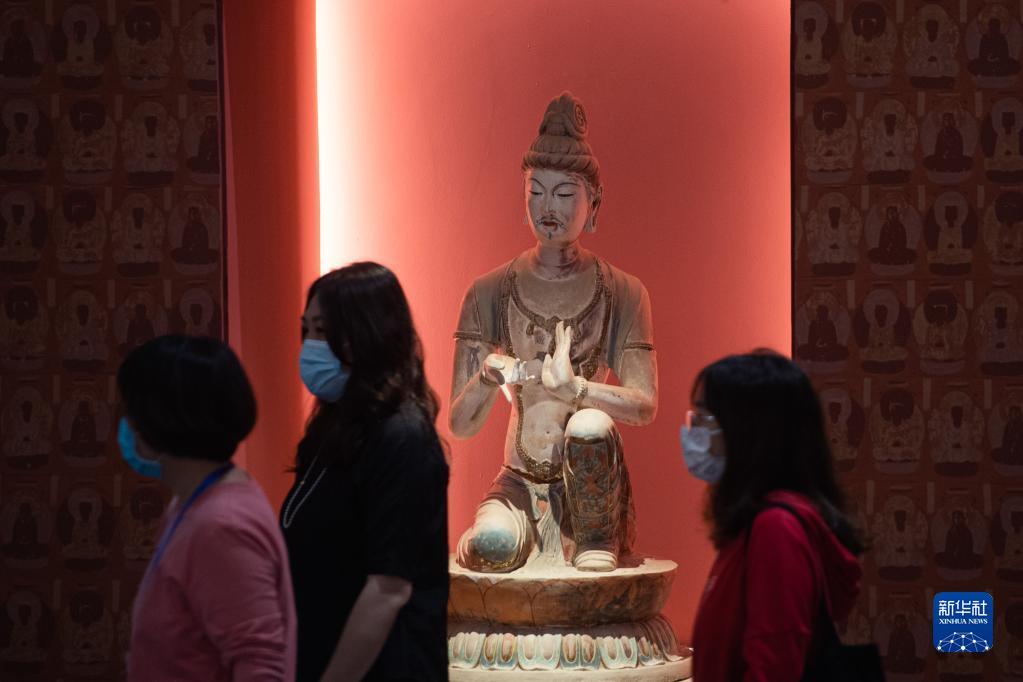 當日,由武漢大學與敦煌研究院聯合主辦的“萬里千年”——敦煌石窟考古特展在武漢大學萬林藝術博物館舉行。展覽共展出文物近百件,多數文物為首次走出莫高窟。展覽還選取了有代表性的壁畫及彩塑臨品、復制洞窟等,展品共計168件(套),全方位立體展示敦煌石窟考古的豐碩成果和重大學術價值。新華社記者 肖藝九 攝