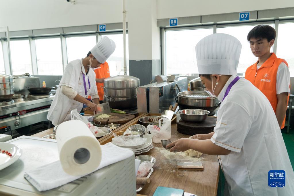 4月12日,在四川省綿陽市公共實訓基地,參加中式面點項目的選手正在準備食材。