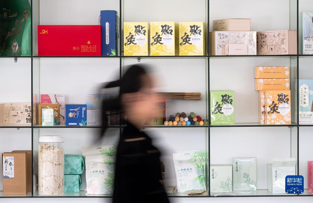 這是在蘄春縣高新鋪村的就業(yè)幫扶車間拍攝的蘄艾相關產(chǎn)品(12月7日攝)。