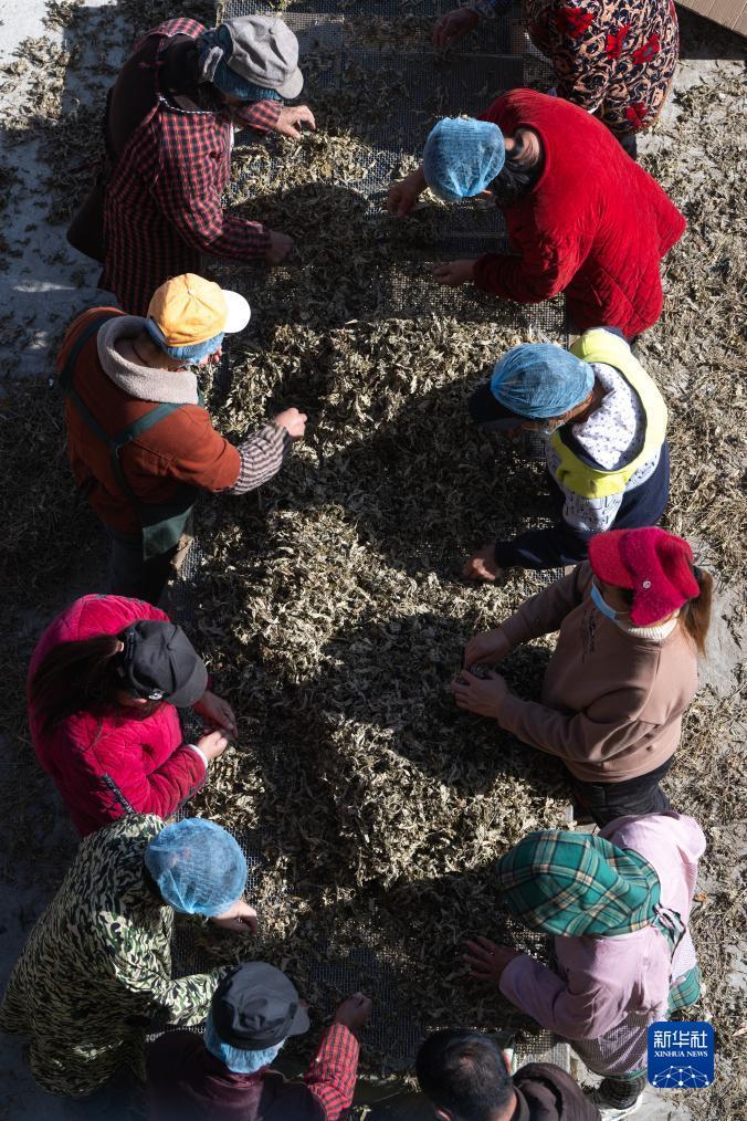 12月7日,在蘄春縣高新鋪村的就業(yè)幫扶車間,工人在對蘄艾進行初加工。